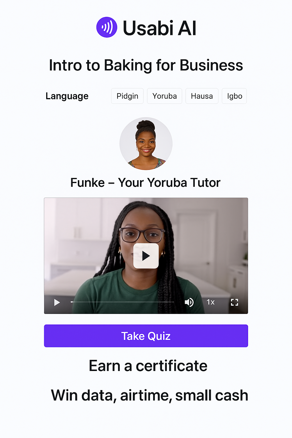 Our learning platform speaks Yoruba, Igbo, Hausa, and English. AI avatar instructors. Personalized learning paths. Available 24/7 on any smartphone.